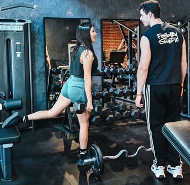 EQUIPADA CON MAQUINAS GUIADAS Y DE PESO LIBRE A CARGO DE LOS MEJORES PROFESORES QUE TE SUPERVISAN, CUIDAN Y MOTIVAN PARA QUE MANTENGAS LA CONSTANCIA Y LOGRES TUS OBJETIVOS